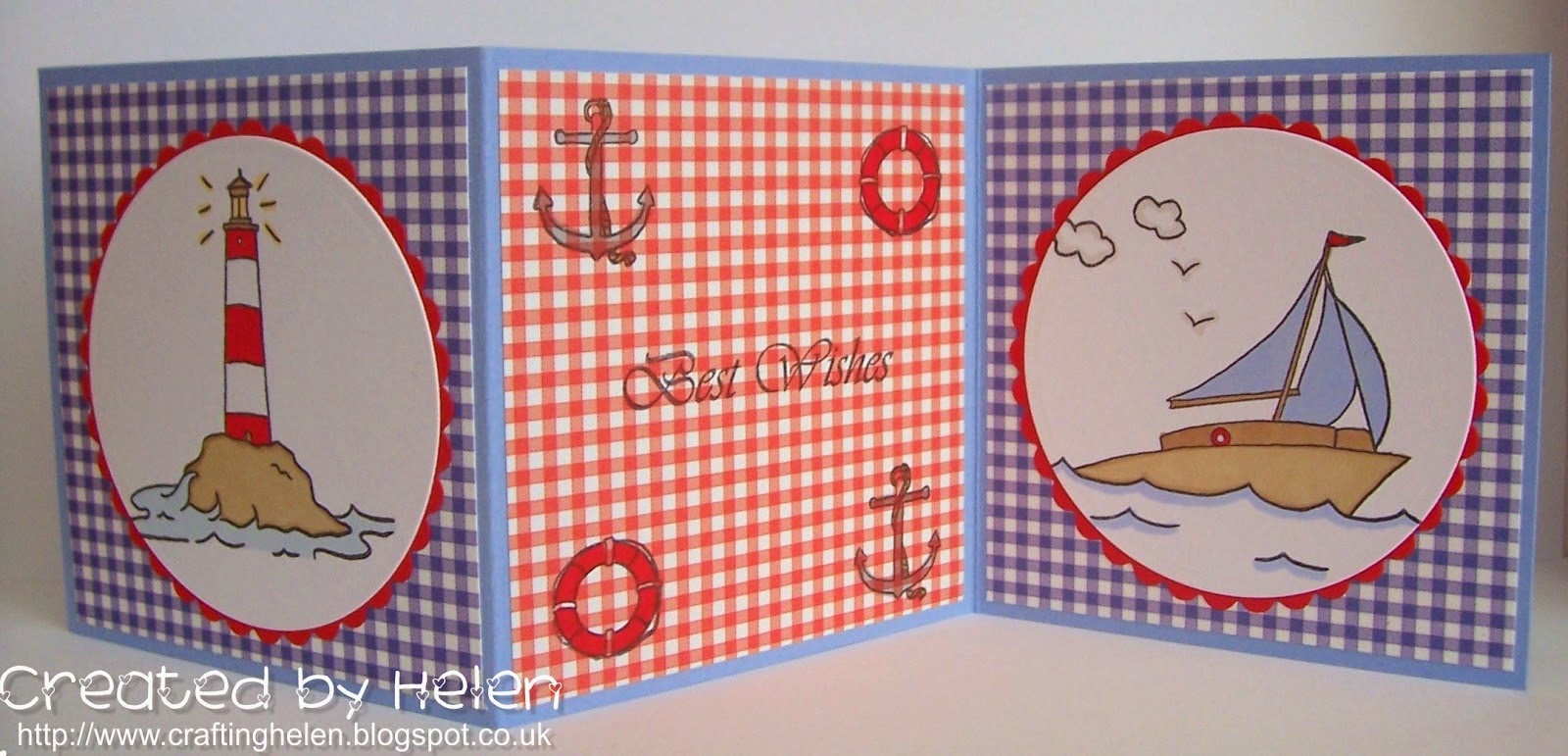 Onto this week, here we are Challenge # 18 and Helen has chosen NAUTICAL - ships and of the sea - the world is your ocean, any thing you wish, boats, ships, the sea, under the sea, on the sea, lighthouses, piers, red, white and blue. Starting with Helen let us have a scroll down to see what the DT have created for your pleasure and hopefully to inspire too.
